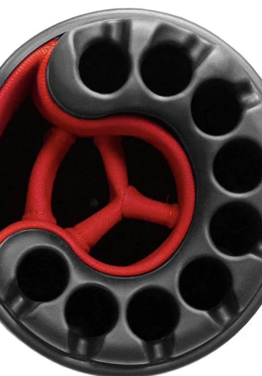 The Water Resistant shell holds off the elements and features a waterproof valuables pocket for added security. Ample storage is available with 9 front access pockets and external putter tube for easy access.