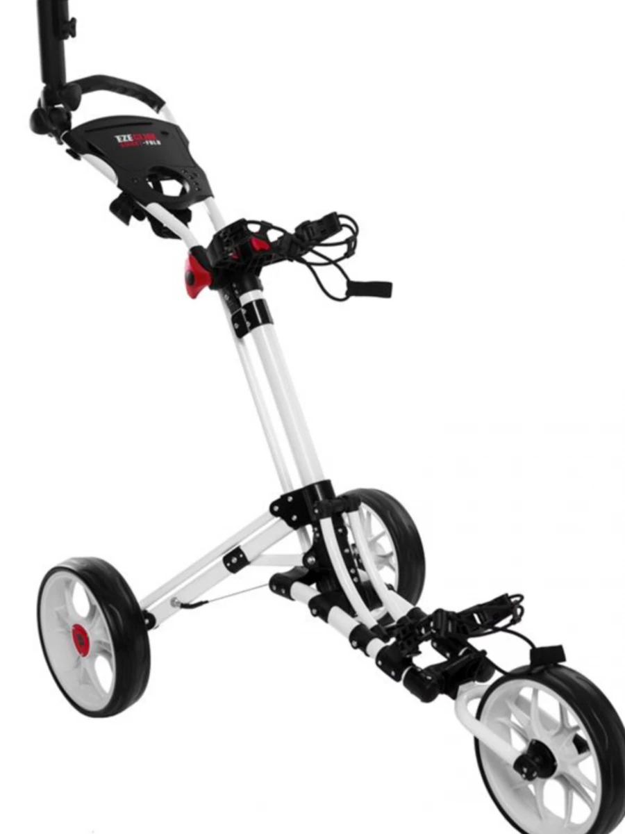 The popular Eze Glide golf trolley range presents the Eze Glide 3G Smart fold Trolley. The premium 3 wheel push trolley comes with a one touch opening and folding mechanism reducing significant time spent in assembling the trolley.