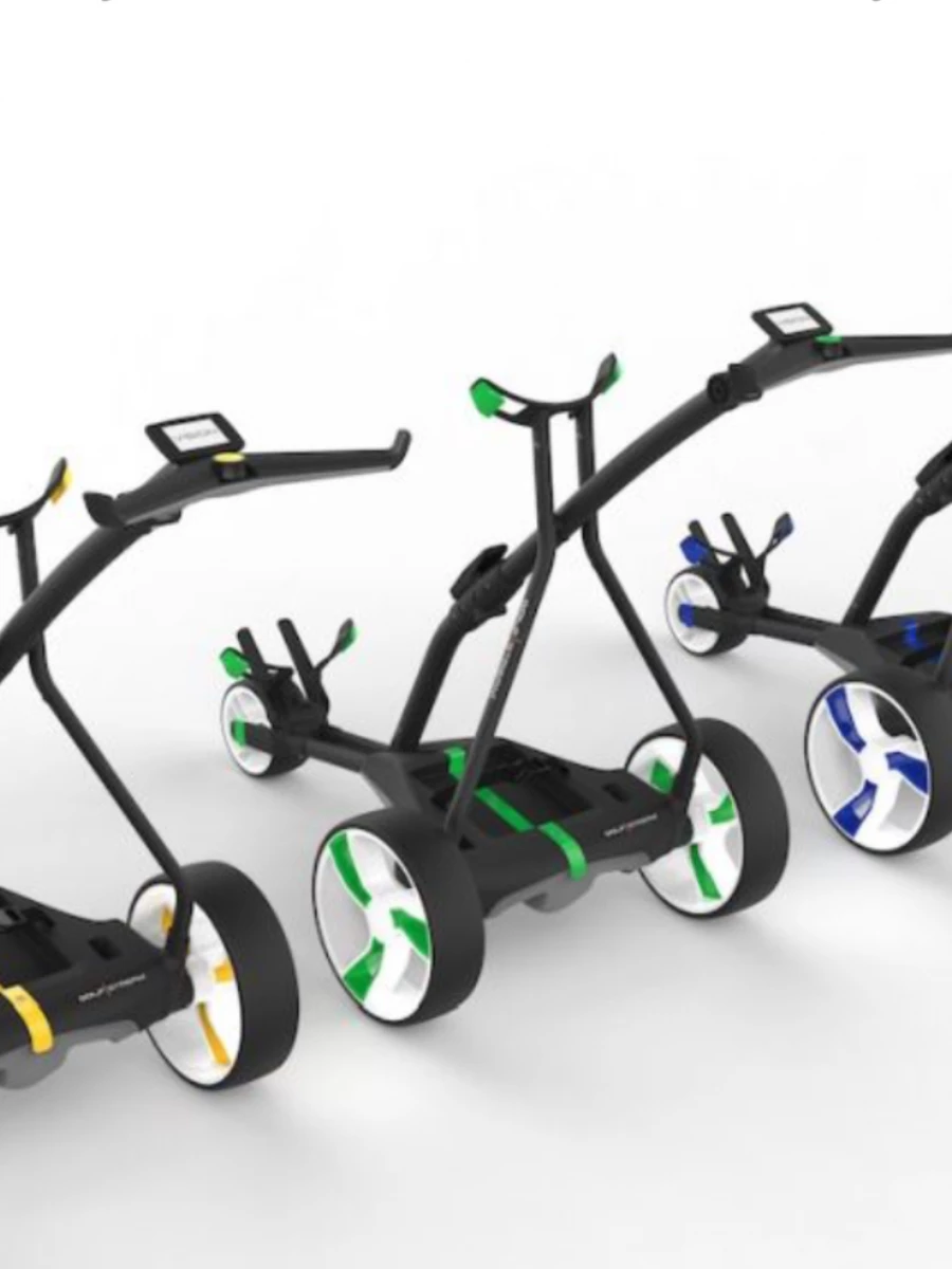 Add to this the colour swaps and the exceptional price point and we think you will agree that this is a package you just can’t ignore. Features – Folds flatter than all main competitors’ trolleys. – Revolutionary Caddy White screen can be seen easily even in full sun. – One touch super simple fold/unfold. – Holds the bag beautifully without “perching” on the central beam to avoid bag wobble. – Non clogging front wheel housing. – Full livery colour swaps available. – Super slick high grip tyre’s. – Longer lasting tyres (5 times longer life than normal EVA). – Easy off main wheels. – Distance control function. – Speed increments in 0.5 to get the perfect speed to match your pace. – Fully programmable left handed operation. – Personalization of the main screen to allow names. –