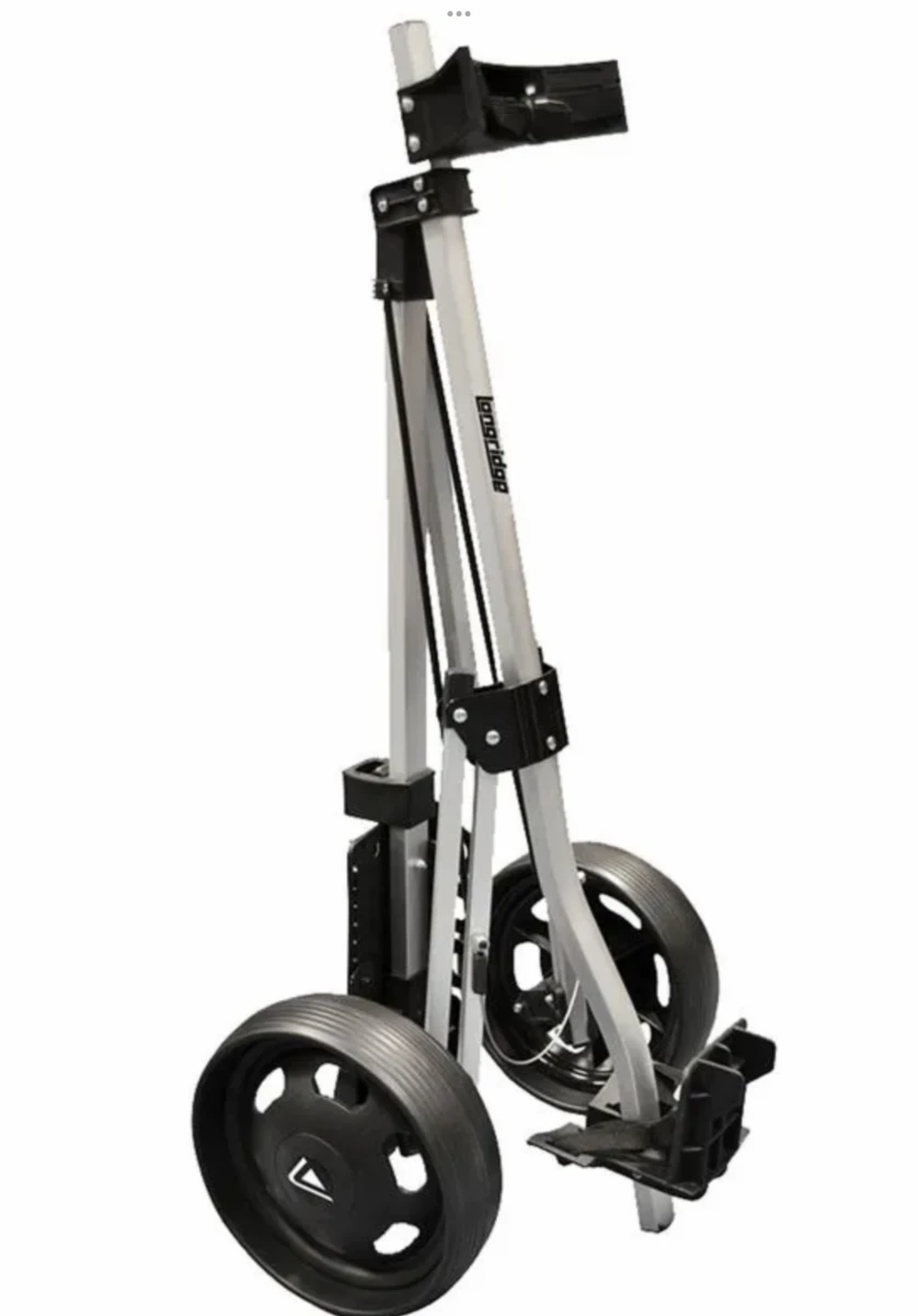 The trolley features quick release wheels, an easy folding mechanism, and includes a fitted scorecard/ball and tee holder as standard.