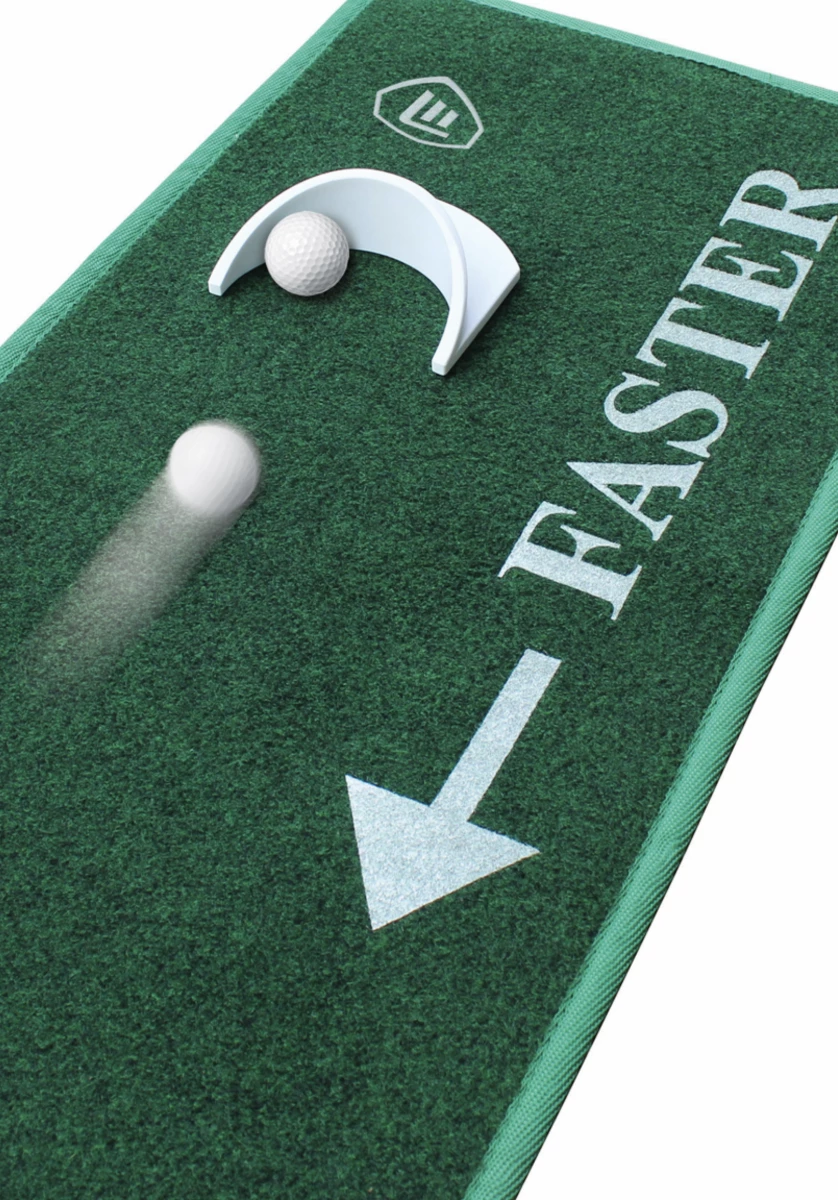 The Dual Speed Putting Mat from Masters Golf allows you to practice wherever and whenever you want. Featuring a unique ‘Faster – Slower’ surface and a moveable putting cup. The Dual Speed Putting Mat is great for improving your putting, which can account for 50% of the strokes taken in a round.